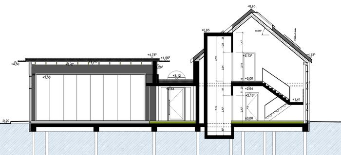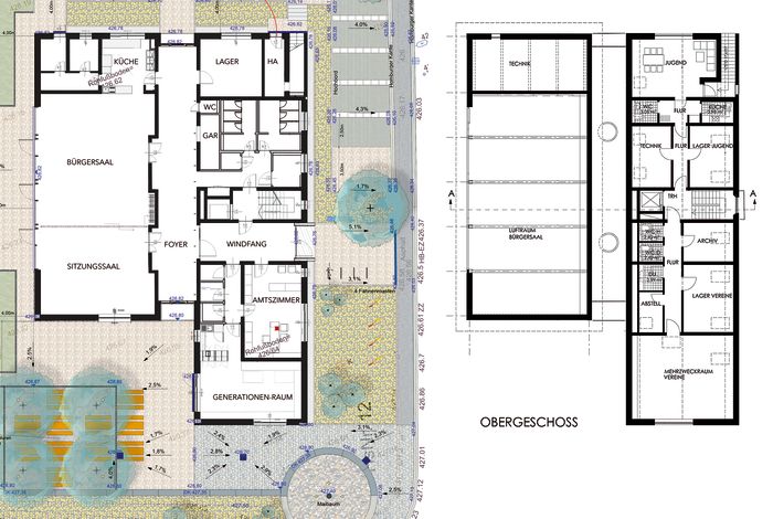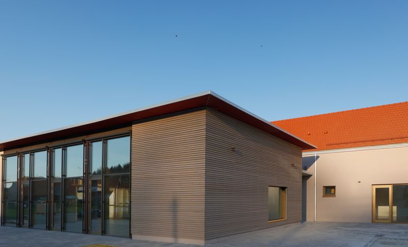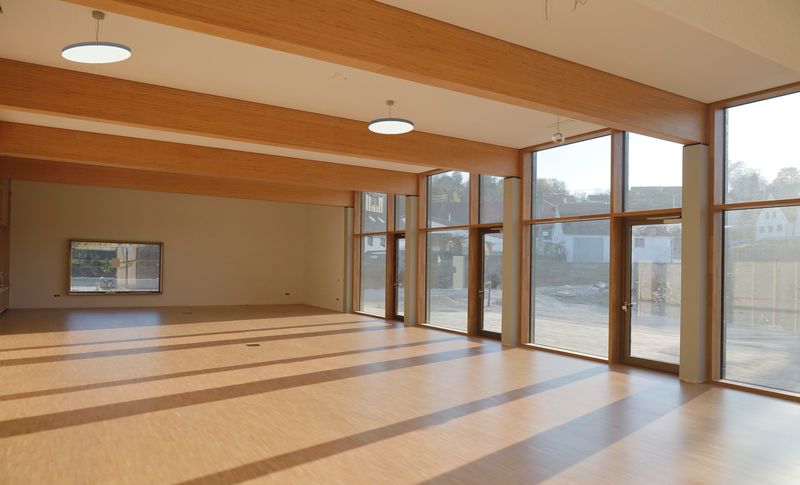 Im Neubau finden ein großer teilbarer Saal mit Küche, sowie ein Amtszimmer, ein Mehrgenerationenraum und Jugendtreff ihren Platz. Es